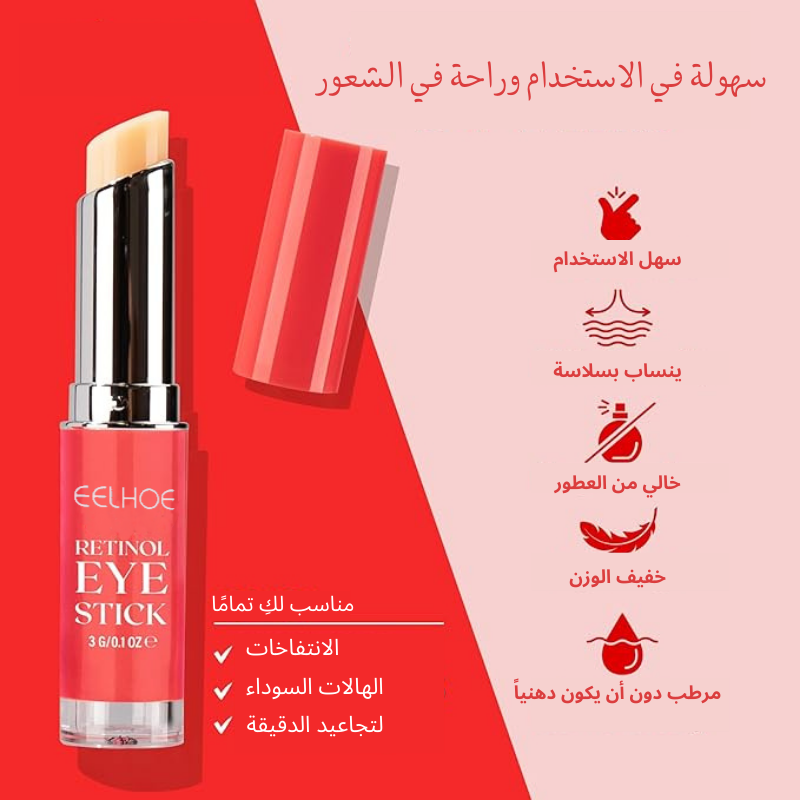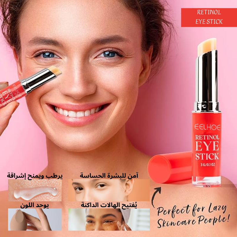 2️⃣ مرري عصا الريتينول بحركات دائرية لطيفة حول منطقة العين (من الخارج إلى الداخل ومن تحت العين إلى الجفن العلوي).