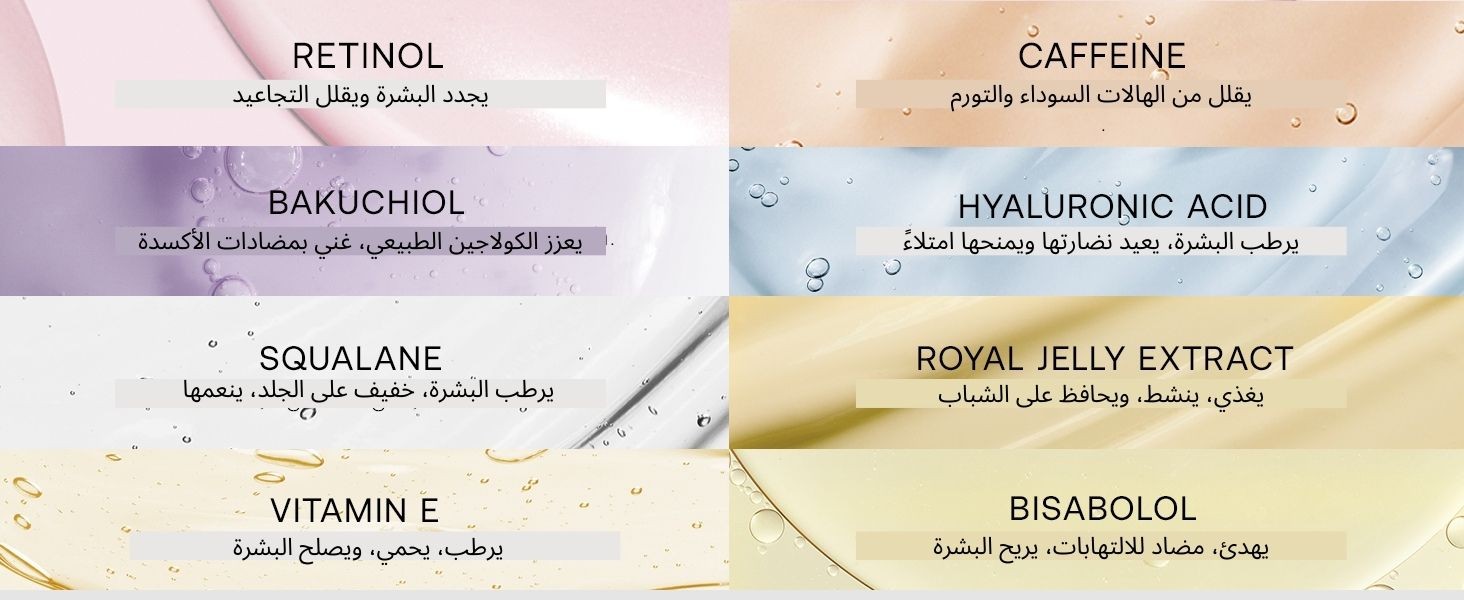 - مكافحة علامات التقدم في السن: يحتوي على الريتينول الفعال الذي يقلل التجاعيد والخطوط الدقيقة تدريجيًا.